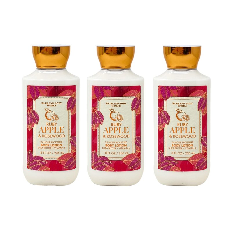 Bath & Body Works Ruby Apple & Rosewood 3 Piece 24 Hour Moisture Body Lotion Set