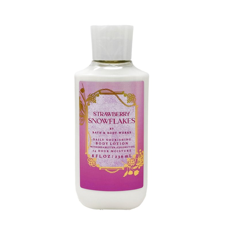 - Bath & Body Works Strawberry Snowflakes - Duo Gift Set - Body Wash and Body Lotion With a Himalayan Salts Springs Soap., pink