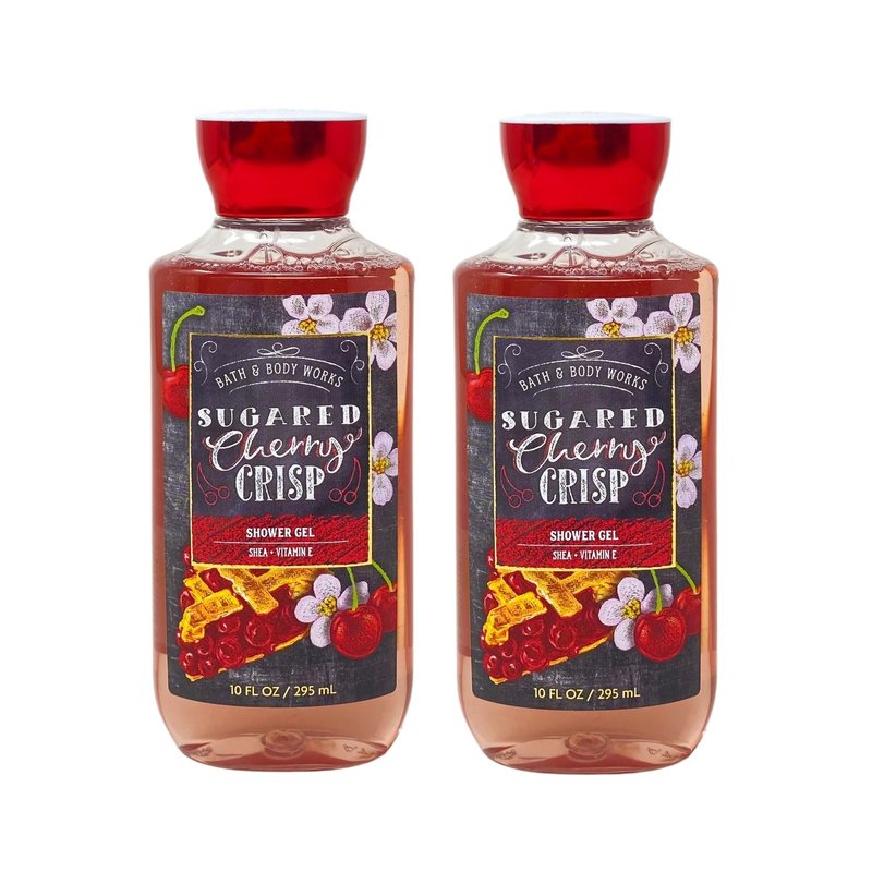 Bath & Body Works SUGARED CHERRY CRISP 2 Pack Shea + Vitamin E Shower Gel Bundle - 10 fl oz / 295 mL each