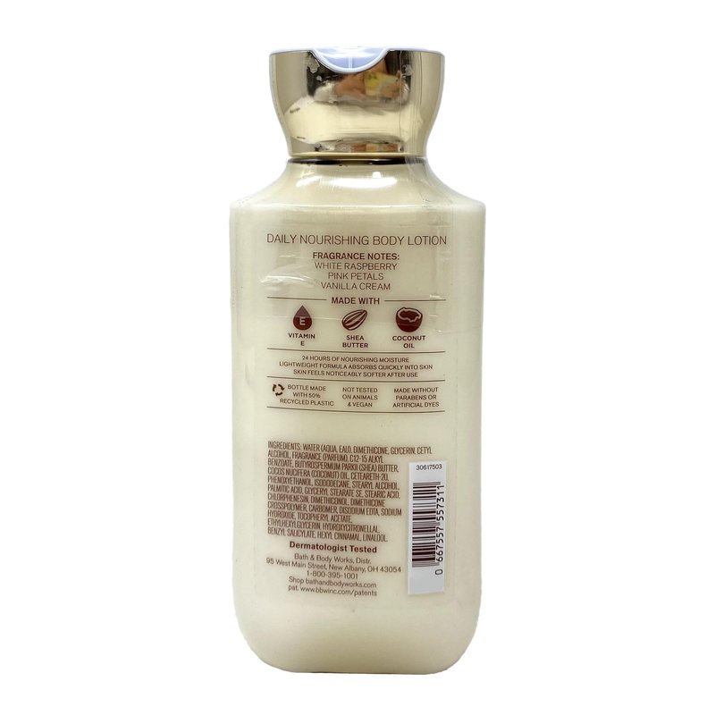Bath & Body Works Sun Blooms & Suede Daily Nourishing Body Lotion Bundle with a Marbela Himalayan Salts Springs Bar Soap. INCLUDES: 3 Daily Nourishing Body Lotions (8 fl oz / 236 mL each) and a Marbela Himalayan Salts Springs Bar Soap. Sun Blooms & Suede - Fragrance Notes: White Raspberry, Pink Petals, Vanilla Cream. Marbela Himalayan Salts Springs Soap - Himalayan salts help hydrate and nourish the skin, with its water absorbent properties. These minerals are known to be helpful for acne, irritated and dry skin. Himalayan Salt Springs soap has natural kaolin clay blended to further moisturize and hydrate your body. Scent: Citrusy Florals with Litsea Cubeba Essential Oil.