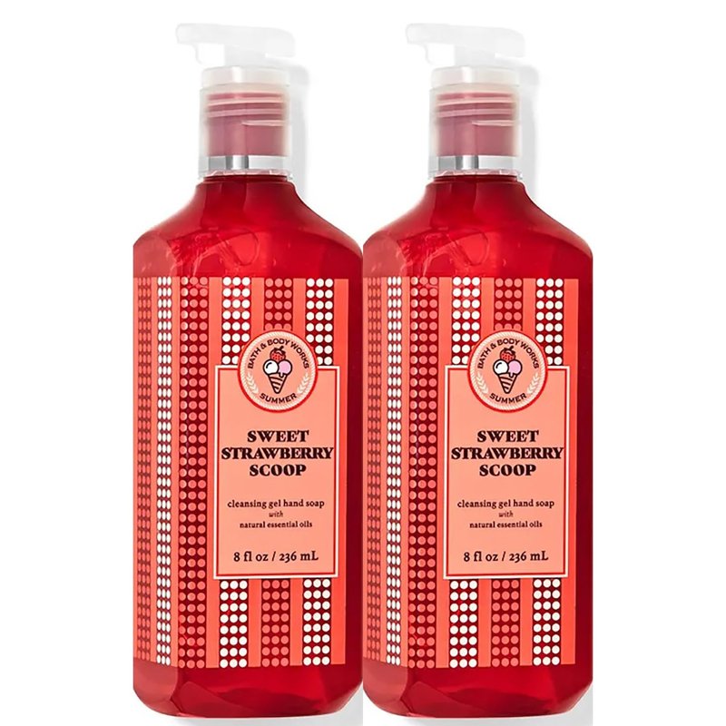 Bath & Body Works Sweet Strawberry Scoop Hand Soap, Cleansing Gel, 8 Fl Oz (Pack of 2) (Sweet Strawberry Scoop)