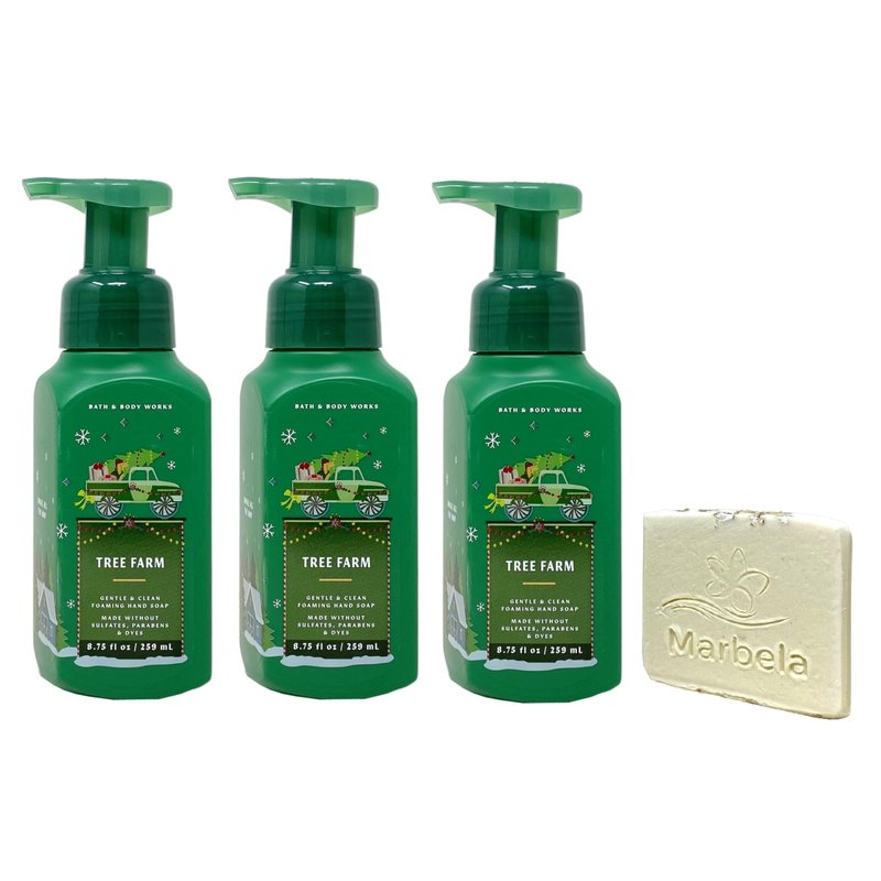- Bath & Body Works Tree Farm Gentle & Clean Foaming Hand Soap Bundle with a Marbela Natural Oats Sample Soap. (Soap May Vary).