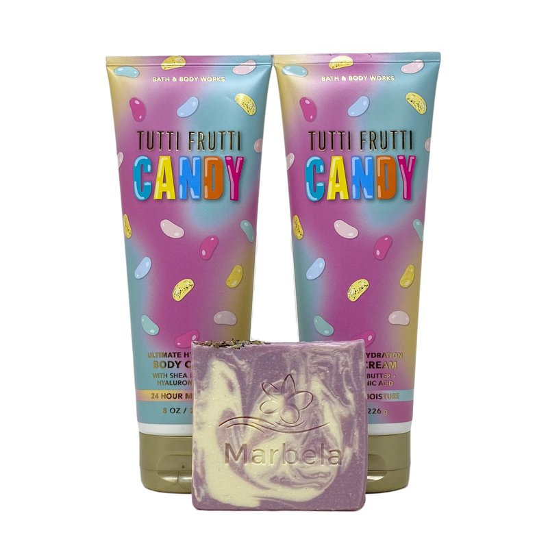 - Bath & Body Works Tutti Frutti Candy 2 Pack Body Cream Gift Set with a Lavender Dream Bar Soap -