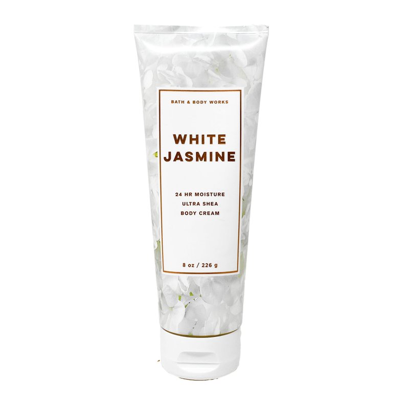 Bath & Body Works White Jasmine - 2 Pack of 24 hr moisture Ultra Shea Body Cream With a Marbela Yamma Jamma Bar Soap.(Marbela Sample Soap May Vary).