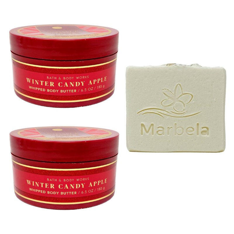 - Bath & Body Works Winter Candy Apple Body Butter Set with a 4 oz Marbela Natural Oats Bar Soap. (Soap May Vary).