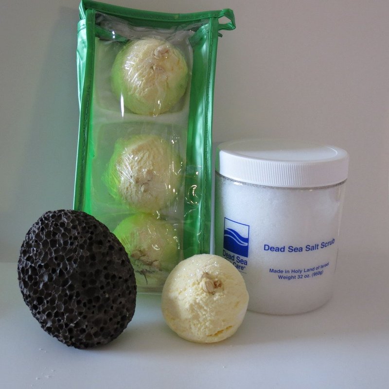 For a deliciously soothing, moisturizing bubble bath, simply place Dead Sea Spa Care Bubble Bath Truffles under running bath water for enormous bubbles. Wonderful oils will nourish your skin. Amazing aromatherapy scent will relax your soul. 3 Bubble Bath Truffles per pack. Use Dead Sea Spa Care Dry Salt Scrub while in the bath for a deep exfoliationg. Use pumice stone for dry areas such as heels of your feet.