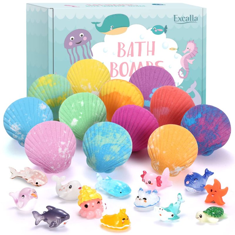 Bath Bombs for Kids with Toys Inside for Girls Boys - 12 Handmade Kids Bubble Bath Fizzies Bomb with Surprise Sea Animals Toys, Moisturize Gentle and Kids Safe (Toy May Vary)