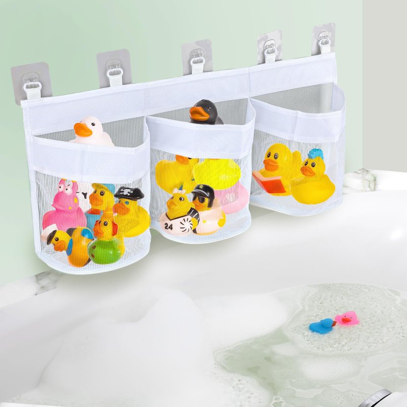 - Premium Materials: This bathtub toy storage is made of nylon material, and the adhesive hooks are made of plastic, highly permeable, can be dried quickly, and is sturdy and reliable. Not easy to break, and can be used for a long time.