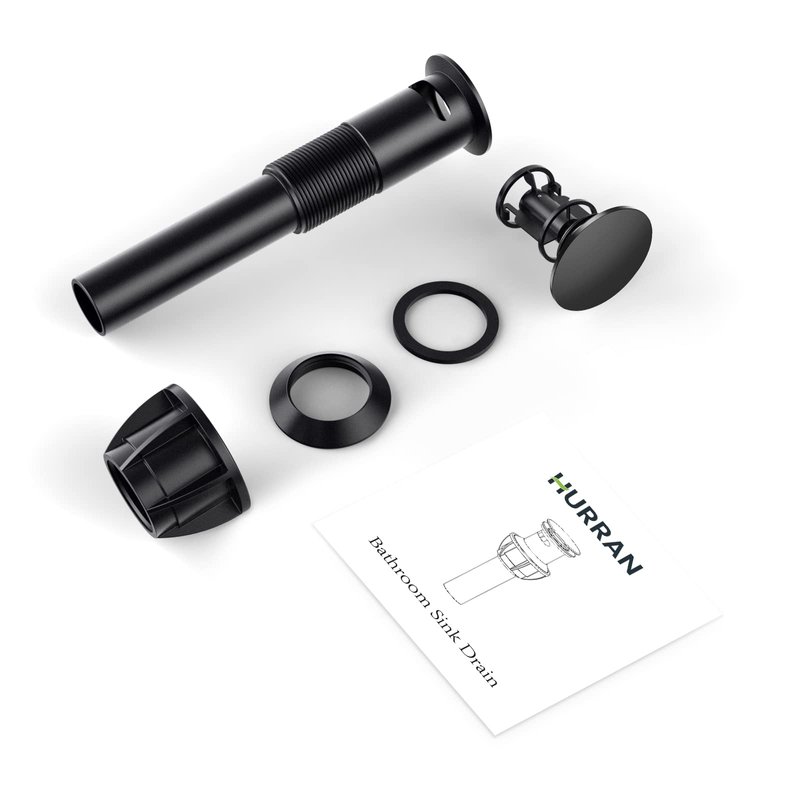 - 👍PREMIUM PP MATERIAL, NEVER PEEL& RUST: The bathroom sink drain pipe body is constructed of premium PP material, it's extremely tough, durable, anti-cracking and effectively prevents water leakage. Anti-fingerprint Matte Black finish, build to resist corrosion and tarnishing. Avoid the embarrassment of finishes peeling and rusting like metal material bathroom sink stopper.