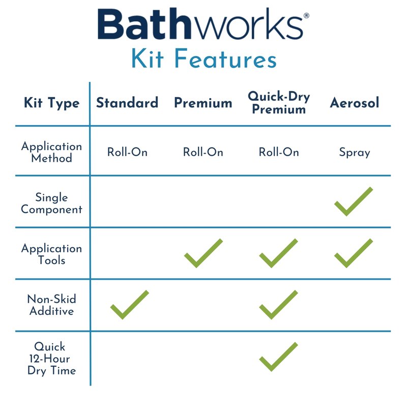 COMBO! Bathworks Premium Kits w/non-slip protection and EZ Etch Combo includes everything you'll need to properly prep and refinish your cast iron (porcelain), steel (porcelain) and ceramic tubs, tiles, and floors for a "Like New" finish for many years to come. BATHWORKS is a top of the line, commercial grade, Bathtub, Shower, Sink and Bath Wall surround refinishing kit formulated to provide an extremely glossy, very durable, long lasting finish. BATHWORKS has been used in hundreds of thousands of residential homes, hotels and apartment complexes across the US and Canada. Unlike other kits, which are based on epoxy paints that easily peel and discolor, BATHWORKS is a 2 part resin and the resulting finish is a porcelain-like, hard, glossy surface that won't easily, chip, peel, crack or yellow.