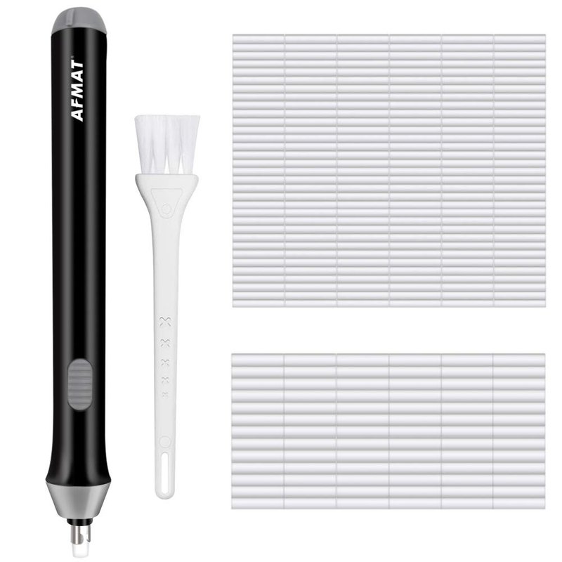 Battery Operated Pencil Eraser for Sketching Pencils/Drafting/Drawing/Graphite Pencils, Couture Creations Creative Detailer Tool, AFMAT Electric Eraser Kit for Artists, 140 Refills