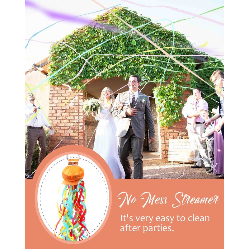 - Romantic and Special : Bright, colorful and easy to clean up after all the fun is over, use hand throw streamers poppers to make a grand wedding exit, you can easily incorporate your wedding party by put the streamers confetti together as a DIY