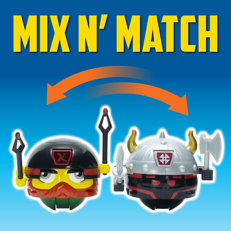 - MIX & MATCH FOR ENDLESS FUN: Collect all Battle Ballz warriors to mix and match weapons and lids, creating unique warriors and endless battle possibilities. Collect all 9 Battle Ballz Warriors.