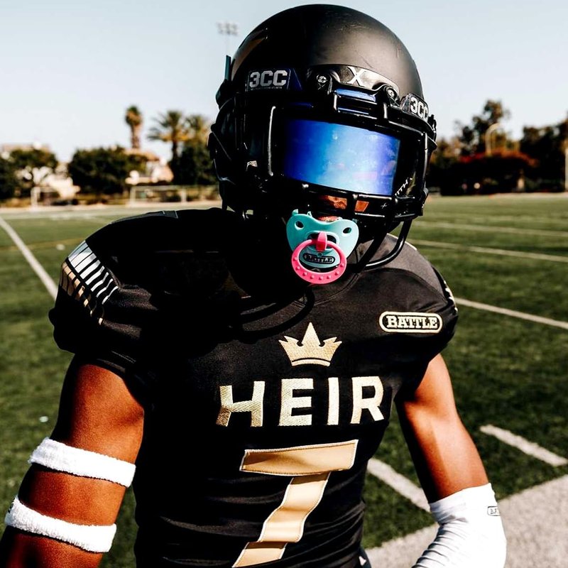 On the field or in the classroom, the Battle Sports Binky Oxygen Football Mouthguard has you covered. The football mouthguard provides maximum protection and comfort. Designed by experts, this football mouthpiece with strap features built-in airflow channels to maximize your oxygen intake and breathability. This next-level mouthpiece is engineered with an extended lip shield and bite pad that comes with a detachable strap to assure maximum protection and security through impact. Minimal bite wings paired with a high-quality, super soft material makes for an extremely comfortable fit even with prolonged use. Quickly get into the game,with no boiling required, maximum protection, and a mouthguard that’s braces-friendly. Choose from a variety of colors to match your gameday fit. One size fits most.
