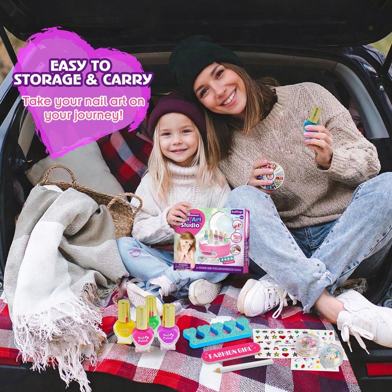 BATTOP Kids Nail Polish Set for Girls, Nail Art Kit for Kids with All-in-One Organizer Nail Dryer, Polish, Stickers, Gems, Filer - Ideas Gift for Girls 6 7 8 9 10 11 12 - Dress-Up Toy