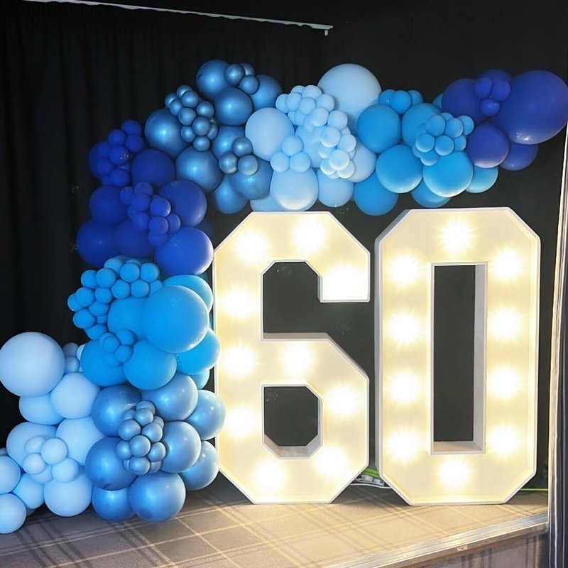 - Package Include: 60pcs 12 inch blue balloons (metallic chrome blue balloonsx12, pastel blue balloonsx12, light blue balloonsx12, navy blue balloonsx12, pearl blue balloonsx12), glue dotsx20, 33feet blue ribbonx2
