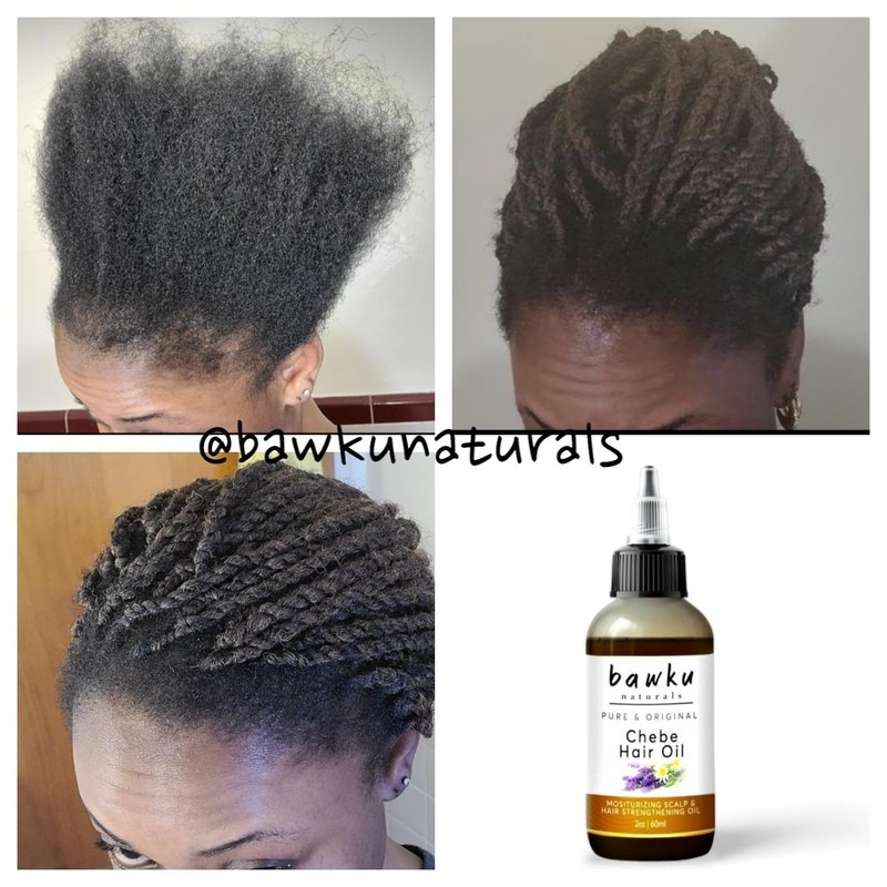 bawku naturals Chebe Hair oil made with 100% authentic Chebe powder (a traditional hair growth remedy from Chad, Africa). It has been used for generations to increase hair growth and prevent breakage. Ingredients: Castor Oil, Coconut Oil, Extra Virgin Olive Oil, Lavender & Chamomile oils, Chebe Powder. Can be used on scalp!