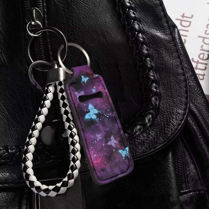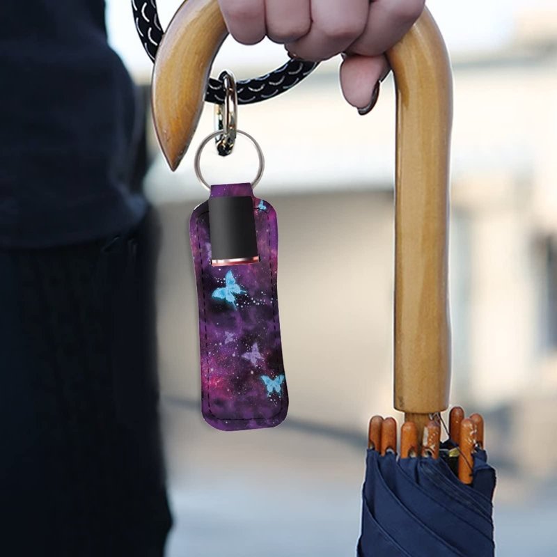 Baxinh Galaxy Butterfly Chapsticks Holder Keychain for Lipstick Lip Balm, Functional Lipstick Holder Clip-on Keychain Car Accessories for Women Girl, Purple