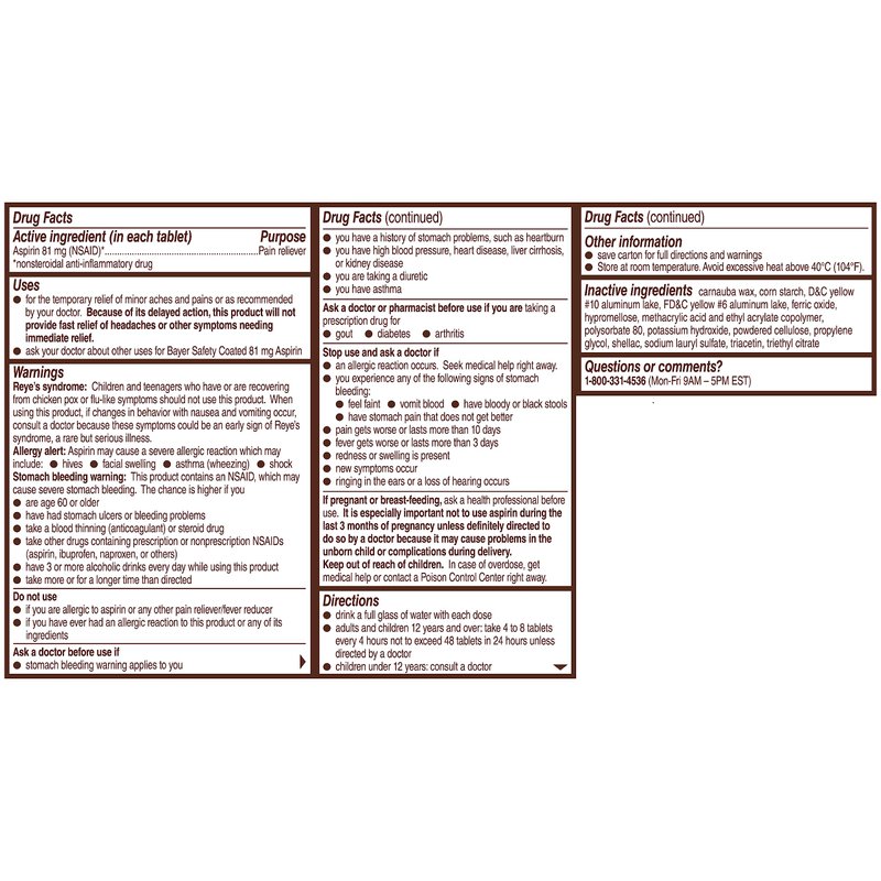Bayer Aspirin Regimen , 81mg Enteric Coated Tablets, Pain Reliever/Fever Reducer, 120 Count