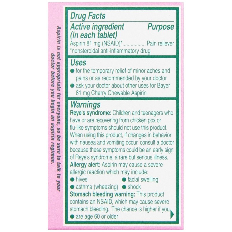 Bayer Children's Chewable, Children's Aspirin Pain Reliever, Cherry, 36 ct