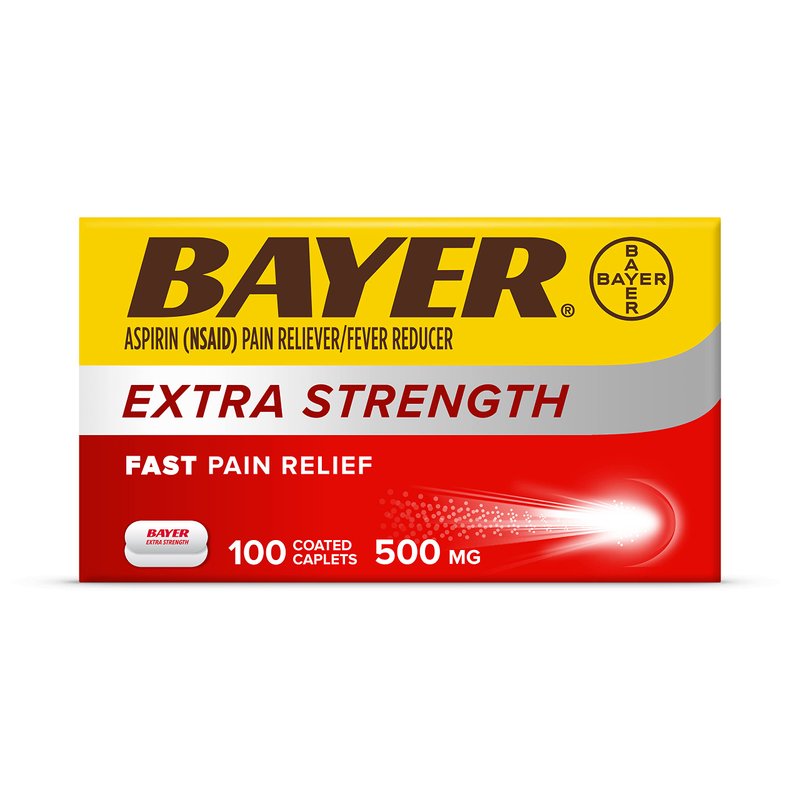 Bayer Extra Strength Aspirin 500 mg, Pain Reliever and Fever Reducer, Powerful Pain Relief of Headache, Muscle Pain, Minor Arthritis Pain, Back Ache, Toothache, and Menstrual Pain, 100 Coated Tablets