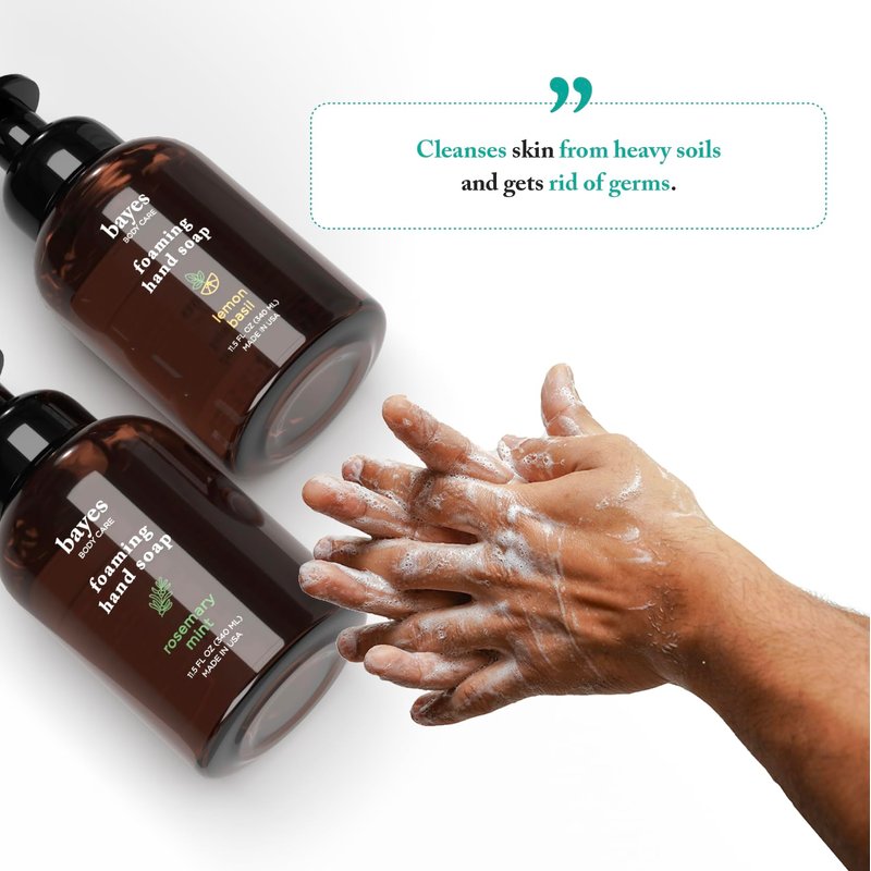 - Luxurious Hand Soap - Pamper your hands with Bayes foaming hand wash infused with natural essential oil fragrances. Formulated with carefully selected plant-derived ingredients that are gentle on the skin, yet cleanses heavy soils and gets rid of germs effectively. Our formula is non-drying and moisturizing for a creamy and luxurious lather