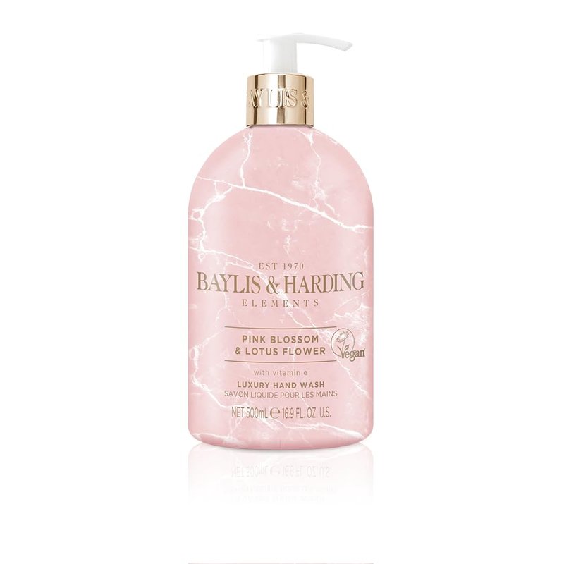 Baylis & Harding Liquid Hand Soap Wash with Dispenser, Elements, Pink Blossom & Lotus Flower, 16.9oz/500ml