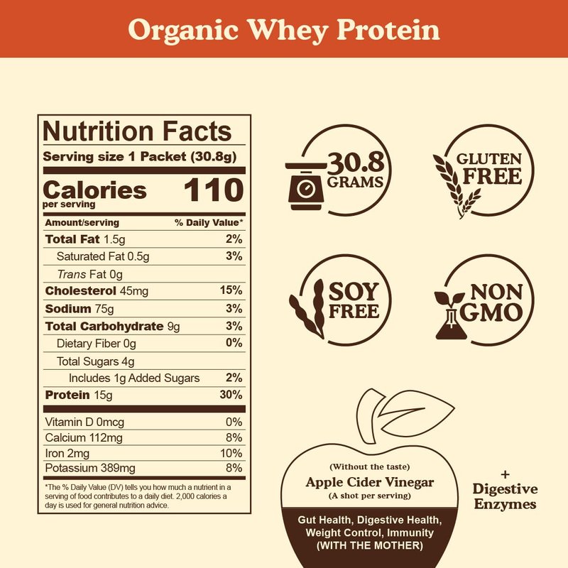 - 15g ORGANIC WHEY PROTEIN: A complete source of protein, containing all your essential amino acids - great for muscle recovery & appetite control absorbing easily