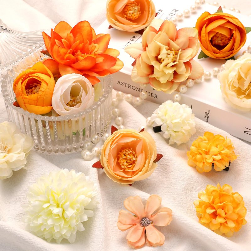 BBTO 21 Pieces Flower Hair Clip Rose Hair Clips Hair Barrettes for Women Flower Hair Accessories Boho Bride Claw Clip Hairpin Brooch Pin Headpiece for Girls Wedding (Orange)