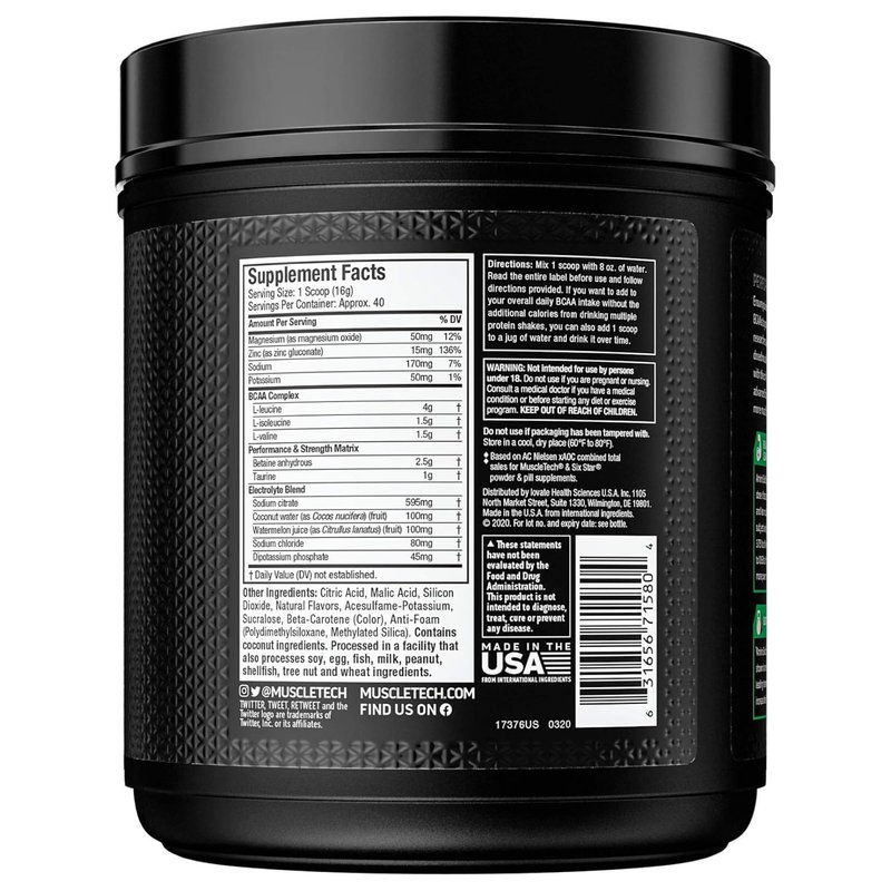 BCAA Amino Acids + Electrolyte Powder, MuscleTech Amino Build, 7g of BCAAs + Electrolytes, Support Muscle Recovery, Build Lean Muscle & Boost Endurance, Tropical Twist (40 Servings)