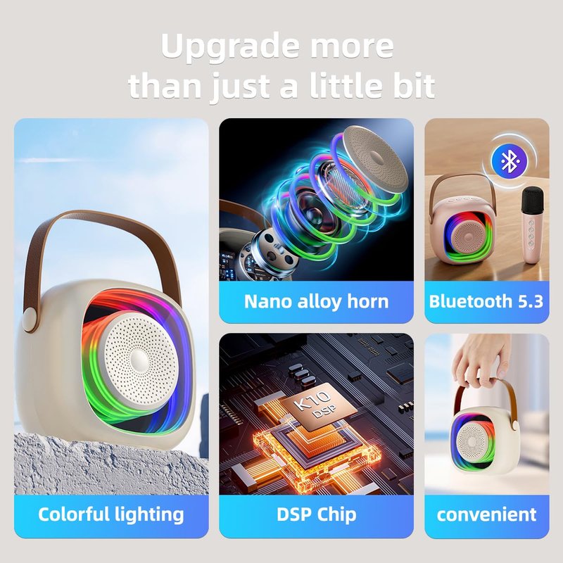 - Multi-function Karaoke Machine: Kids karaoke machine is equipped with colorful lights and 5 magic sounds including girl's, boy's, baby's, monster's and the original sound.