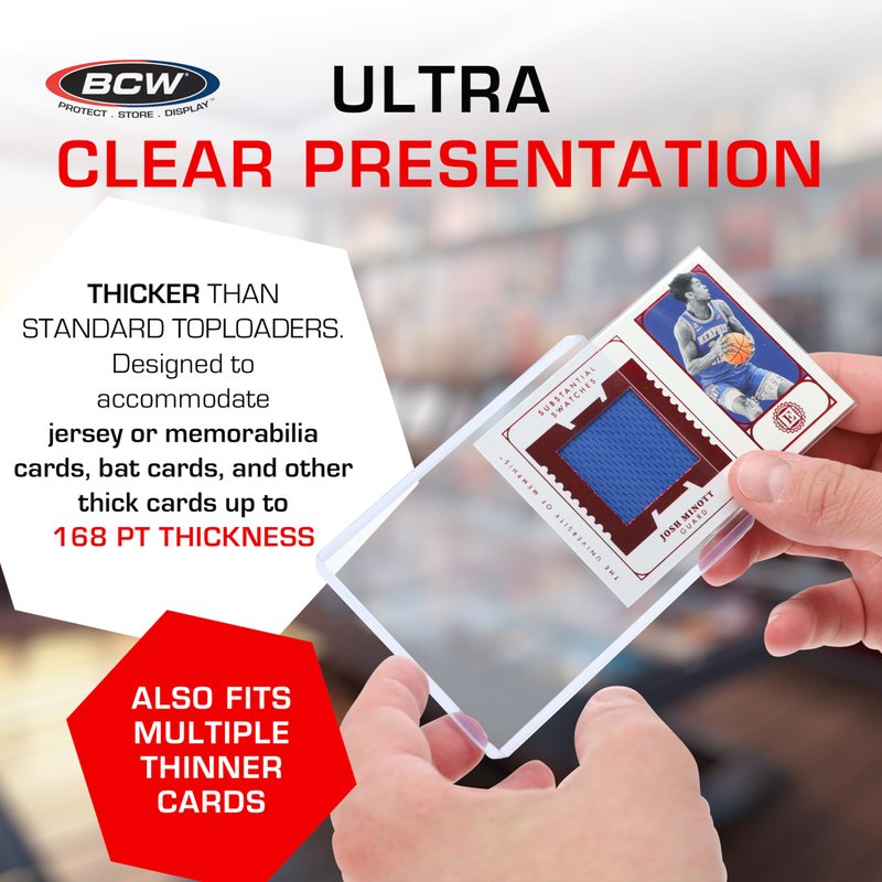 BCW Thick Card Topload Holder | Holds Relic, Patch, and Jersey Cards | Protective Card Sleeves for Collectibles and Trading Cards | Protective Rigid Plastic Display Card Holder (168 pt. / 4.25 MM)