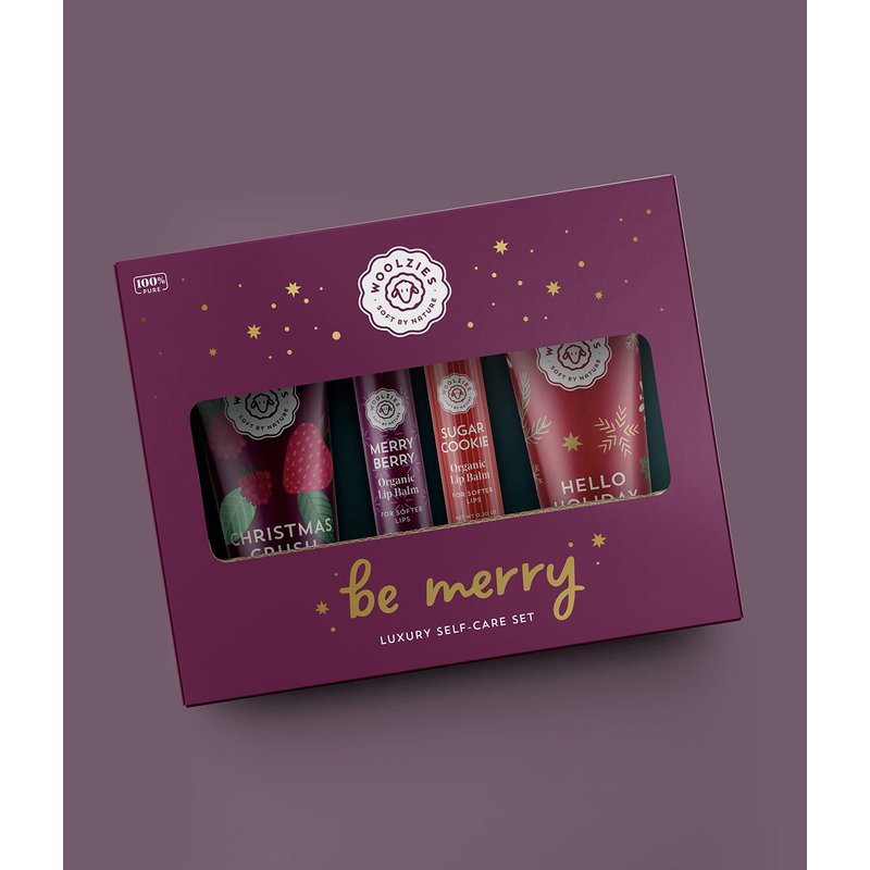 Be Merry Luxury Self-Care Set | Includes Christmas Crush Hand Cream, Merry Berry Organic Lip Balm, Sugar Cookie Organic Lip Balm, & Hello Holiday Hand Cream