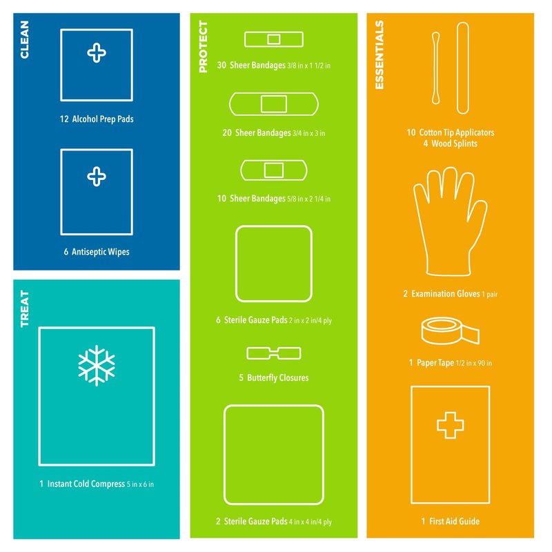 Be Smart Get Prepared 110 pc First Aid Kit: Clean, Treat, Protect Minor Cuts, Home, Office, Car, School, Business, Travel, Emergency, Outdoor, Camping & Sports, FSA/HSA (Packaging may vary)