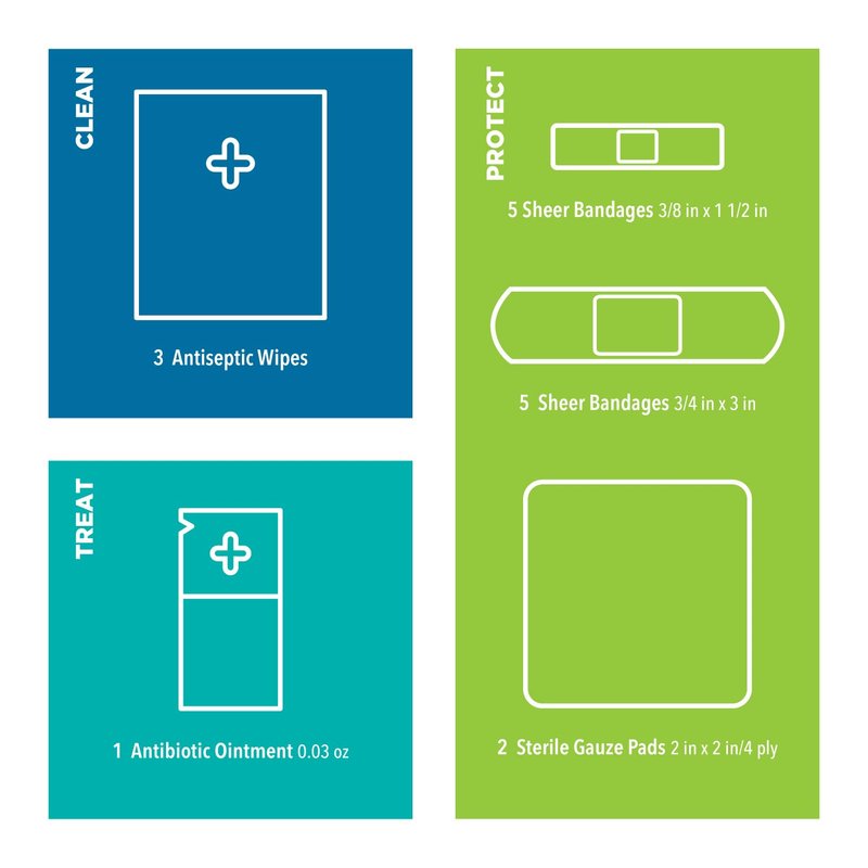 - WE GOT YOU COVERED: Provides treatments for minor cuts, scrapes, and abrasions with 16 pieces of comprehensive first aid