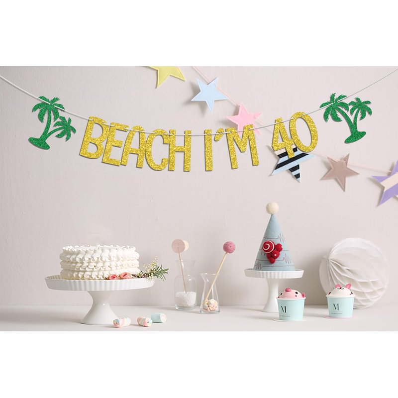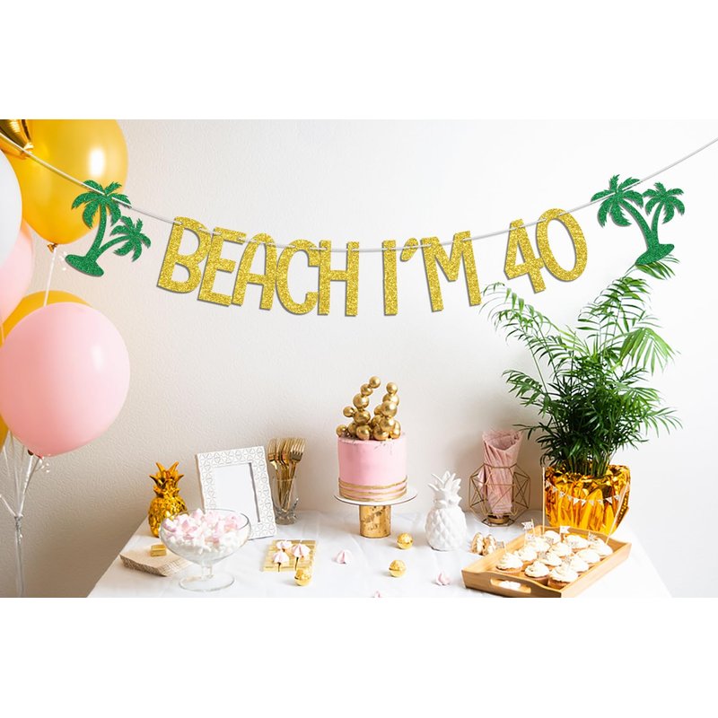 - Beach I'm 40 Banner: Beach I'm 40 slogan, very suitable for 40th birthday party.