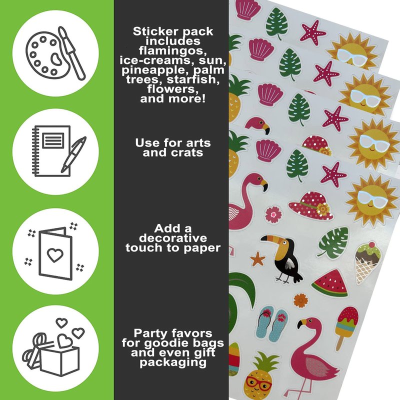- SIZE AND QUANTITY: In this package you will receive 115 summer stickers. 23 cute summer beach stickers per sheet. 5 sheets total. You will receive flamingoes, ice-creams, sun, pineapple, palm trees, starfish, flowers, seashells and more!