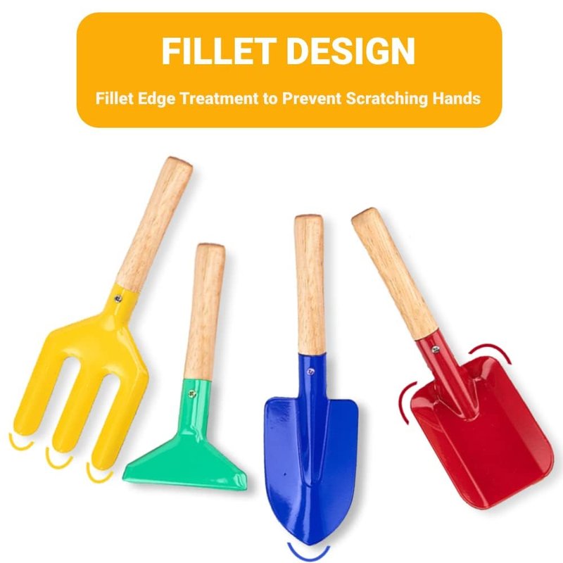 - 【Beach Shovel Tools】 This set includes Trowel, Fork, Rake & Shovel for kids.This length is 8 inches(Multiple colors).Each tool is constructed of high-quality metal, with a serviceable hardwood handle.Gifts for Children,Christmas gifts