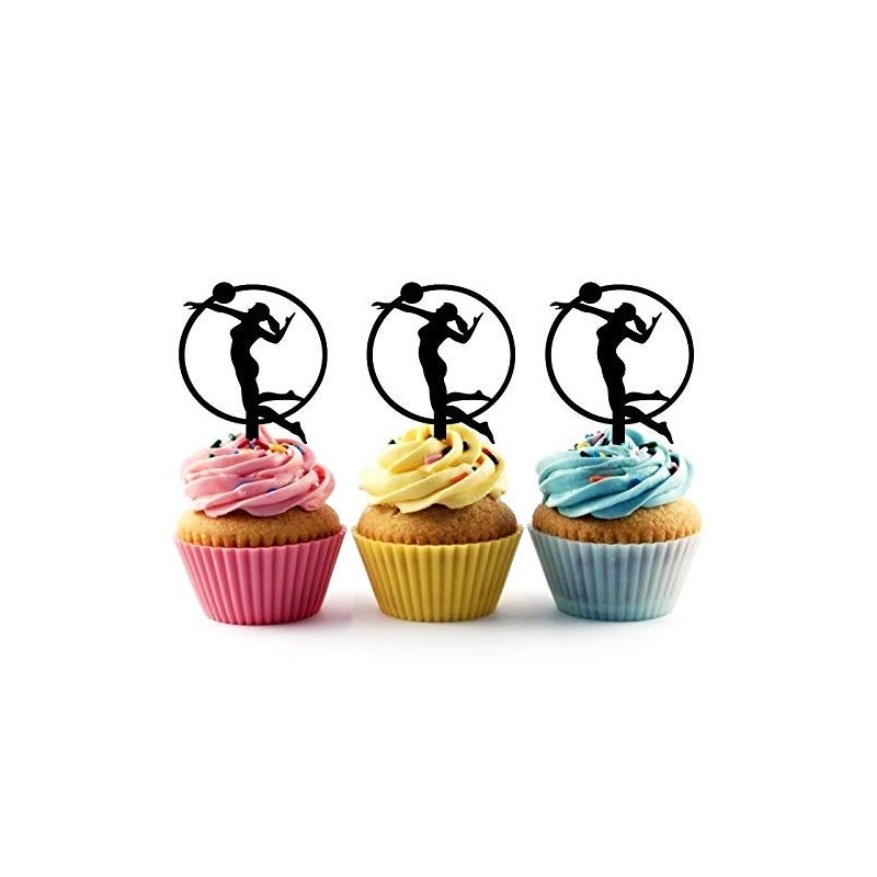 Beach Volleyball Silhouette Acrylic Cupcake Toppers 12 pcs