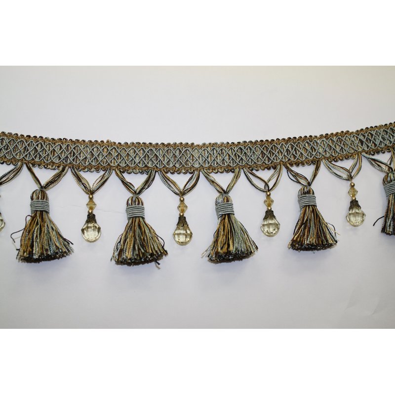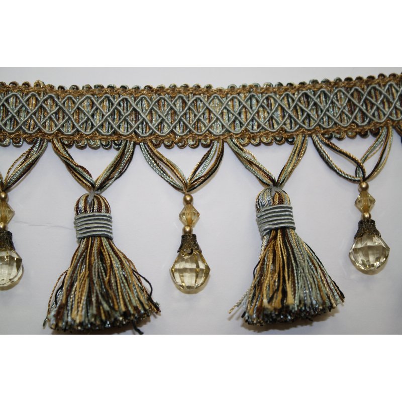 Beaded Tassel Fringe Trim 3.5" Style# Bf 4027 11/06 Color Blue/gold/brown
