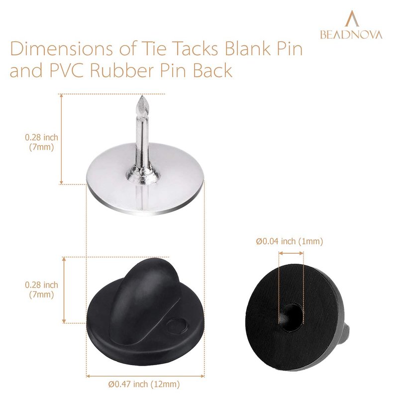 BEADNOVA 50 Pairs Pin Backings Tie Tacks Blank Pins with Rubber Pin Backings Pin Backs for Crafts (Silver Black, 50 Sets)