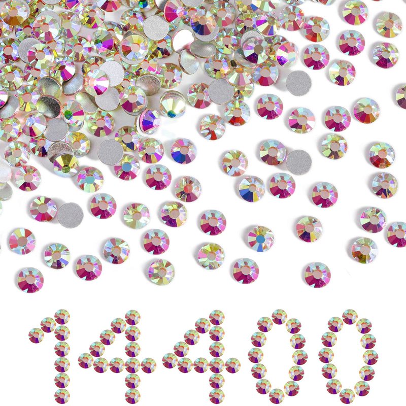 Beadsland Flatback Rhinestones Bulk,14400pcs AB Crystal Rhinestones for Nails Crafts Clothes DIY Decoration, Crystal AB, SS10, 2.7-2.9mm
