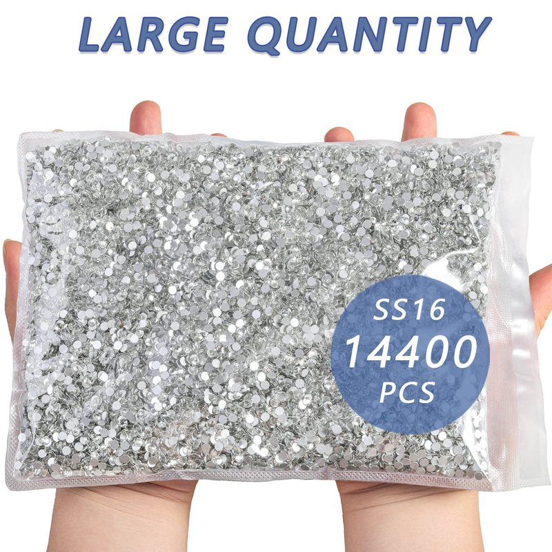 Product Discription: Flatback Rhinestones Material: Glass Color: Crystal Package including: Rhinestones SS16 (14400 pieces) Product Usage: It is fit for decorate your nails,phone, tablet, card crafting, wallet, shoes, table scatter decorations or wedding stationary.Very important: it's not hotfix rhinestones,you will need use glue to fix it!!! Customer Service: If you have any problem for our product, you can click the “seller contact” button in your Amazon account to email us.