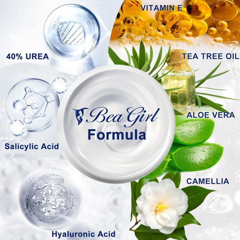 BeaGirl Urea Cream for Feet-40% Urea,2% Salicylic Acid,Hyaluronic Acid,Aloe Vera,Camellia,Shea Butter,Tea Tree,Vitamin E-Moisturizing Foot Cream for Dry Cracked Heels and Feet-5.29 Fl.oz