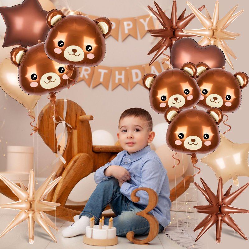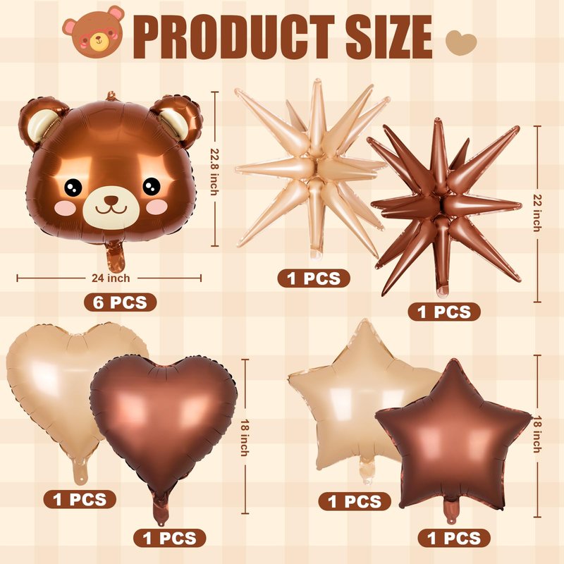- Package Includes: You will receive 14 pieces of brown bear themed foil balloons, including 6 pieces of cartoon bear balloons, 4 pieces of Starburst balloons, 2 pieces of star balloons and 2 pieces of love shape foil balloons