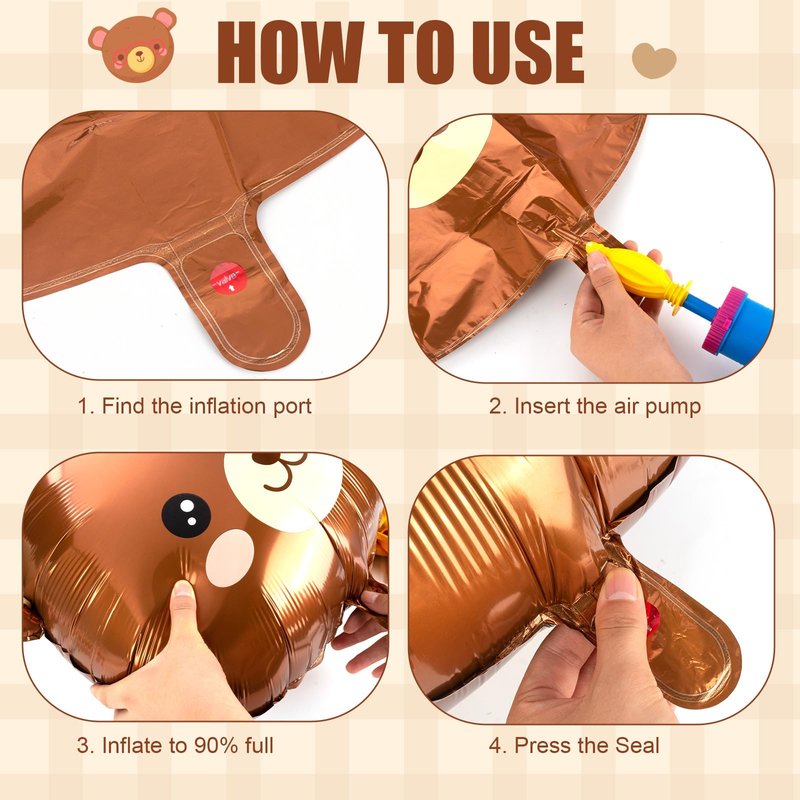 - Easy to Use: Inflating these bear mylar balloons is quick and easy. You can use a straw or a hand pump to fill it with air. Once inflated, they hold their shape perfectly throughout your party activities