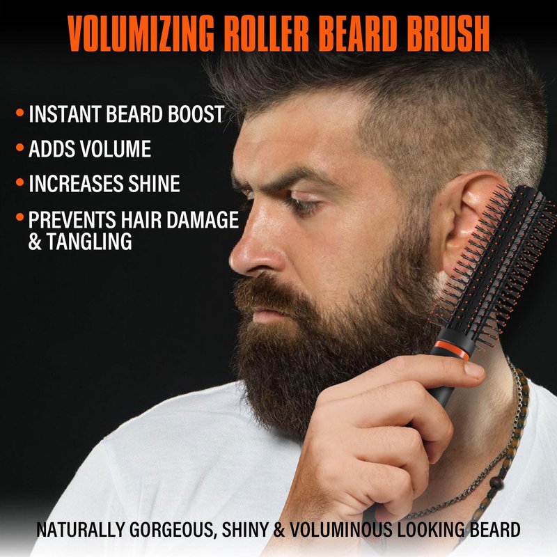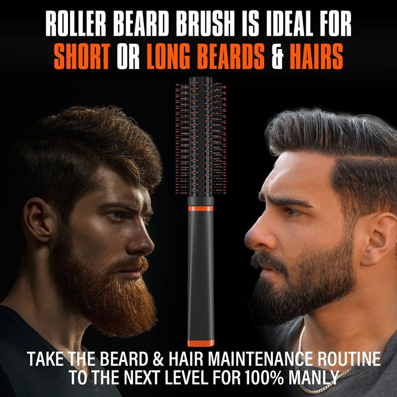 - VOLUME & ROUND BRISTLE BEARD BRUSH: This new beard brush features breakage-free bristles that tame and smoothen all beard & hair types effortlessly. The ultra-soft bristles allow for easy and painless detangling. Roller beard brush can help beard achieve the style you've always desired, increase volume and make your beard fluffier. Its non-slip diamond-shaped grip design ensures precise control and ease of use, making styling a breeze and achieving a manly beard & hair.