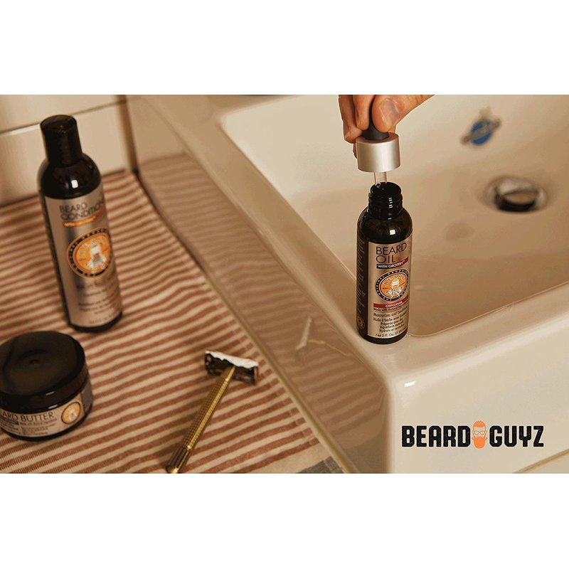 Your beard is a beacon of bushy wonder to all those around you. Make sure you’re using the right stuff to care for it and give it the attention it deserves. Beard Guyz Beard Oil is a luxurious blend of oils like pea sprout, grape seed, and avocado, specially formulated to moisturize and condition all types and lengths of facial hair. Just a few drops can tame even the wildest beards, nourishing and smoothing each of those beard hairs for a clean, perfectly-groomed look.