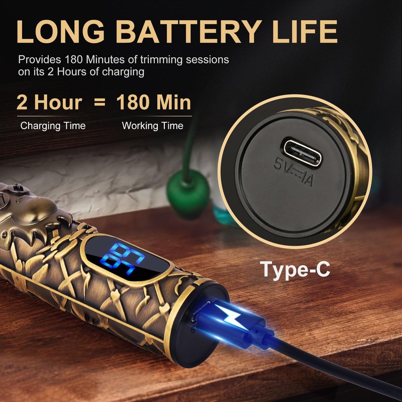 - Upgraded USB Fast Charging : Always forget to bring the charging cable when you go out? Still worried about the traditional figure-8 charging port? Just choose YIDON. Trimmer for men uses Type-C model universal charging connection port that can be connected to any USB adapter, laptop and car charger. Barber clippers has a built-in 1500 mAh rechargeable lithium-ion battery. It can be used wirelessly for 180 minutes after 2 hours of fast charging, easy to carry on business trips and travels