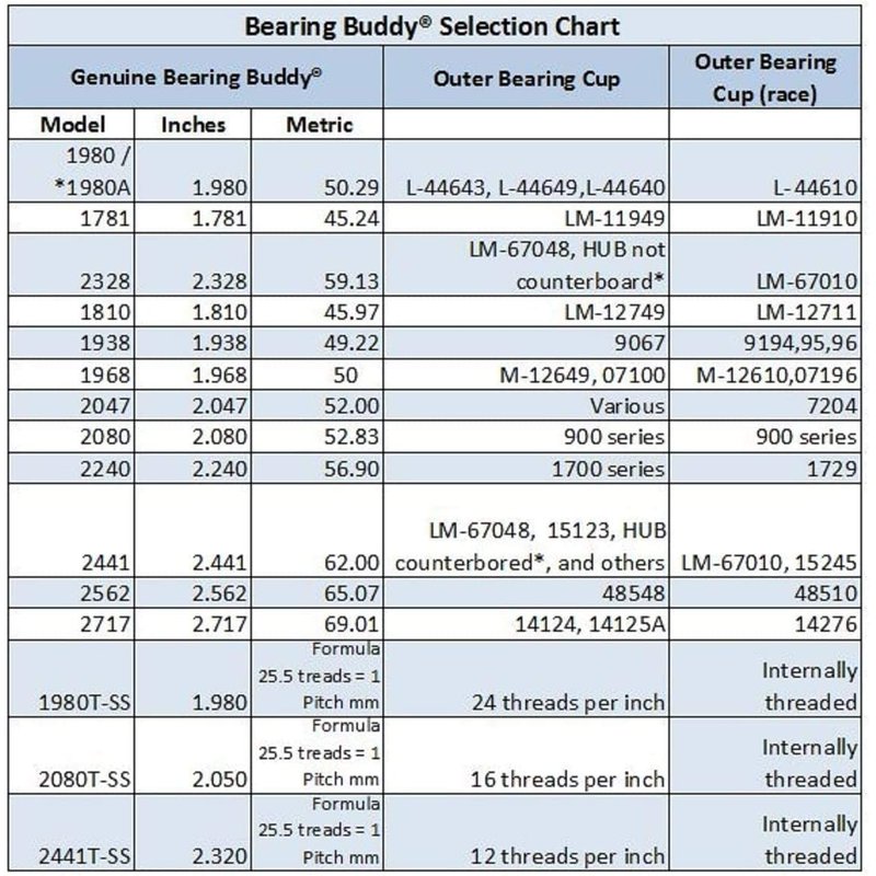 - PEACE OF MIND –Bearing Buddy’s quality speak for themselves; If used and serviced properly, your bearings would last 2 to 3 times as long as they would without these trusty buddie; Forget about the bearing overheating and failure along highway somewhere; Save yourself the hassle and order these premium quality small bearings now, better safe than sorry.